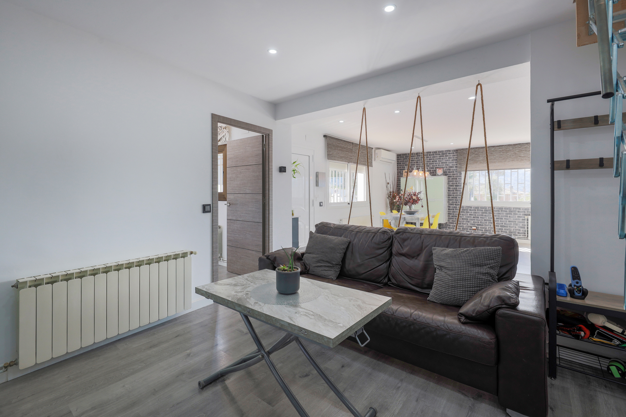 En el piso de abajo encontramos un recién reformado salón comedor con cocina abierta y una magnífica isla en el medio que da amplitud y comodidad a la zona. Decorada hasta el mínimo detalle y con unos grandes ventanales que dan luz natural todo el día. El salón dispone de un aseo para invitados y también acceso al lavadero.