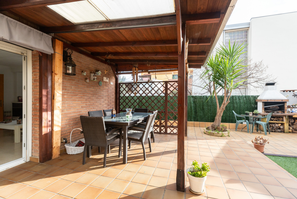 En el exterior, la parcela destaca por un precioso jardín de 143m2 , con parte de césped artificial que mantiene un aspecto cuidado durante todo el año, con su precioso limonero. La zona de barbacoa en jardín, para disfrutar de familiares y amigos, convierte cada evento al aire libre en una experiencia sencilla y agradable, con zona de porchada «chill out» para disfrutar de las tardes de verano.